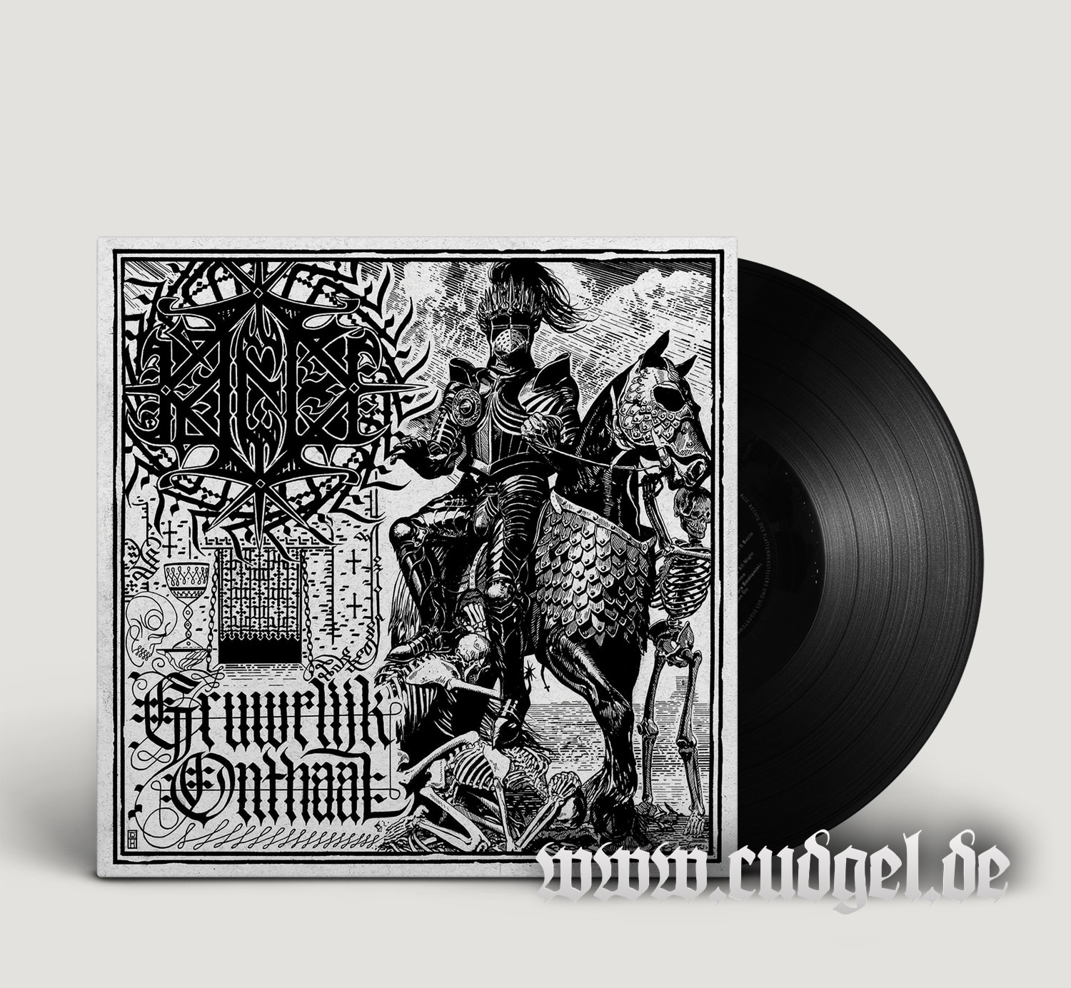 Oovenmeester’s vocals growl and bite their way through seven tracks of pure filth. With the new drummer Frostbite, all optimism is shattered. R. Nillesen (formerly also drums) only plays the bass this time – the insane basslines and sounds he has created give this album a special dark note. – With dark, haunting keyboard sounds, hellishly heavy guitars, pounding bass and drums that extinguish all life, KAECK immortalize their darkest album with Gruwelijk Onthaal.