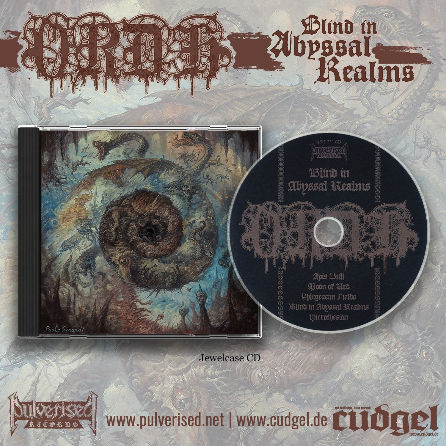 Sticking to a very organic sound, most of the album was done in-house, with the drums recorded in a proper studio with lots of old microphones before everything was refined during the mixing process by Andrew Oswald (PERISHING, MORTIFERUM). The end result is unlike anything youve heard: dark and ominous yet beautiful in places, Blind In Abyssal Realms takes the listener by the hand right from the opening chord of Apis Bull, never letting you go until the final notes of Hierothesion fade out forty-three minutes later.